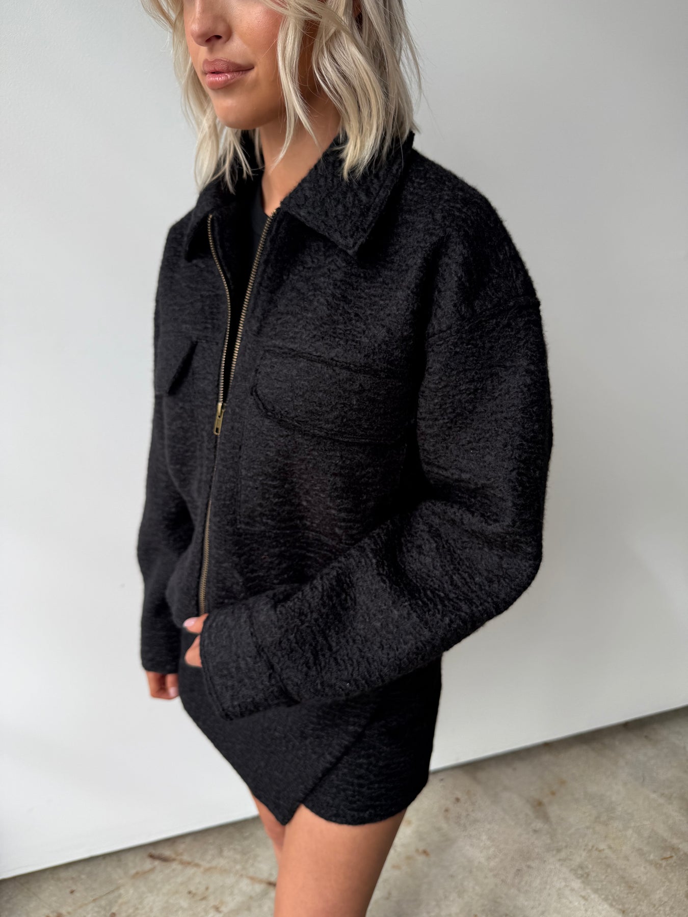Sleek, versatile, and designed to move with you. The Mercer Skort combines the polish of a mini skirt with the comfort of built-in shorts. Made in the same rich textured fabric as the matching jacket, this piece gives an instantly put-together look whether styled with the full set or a simple tee. A true wardrobe essential for your fall edi