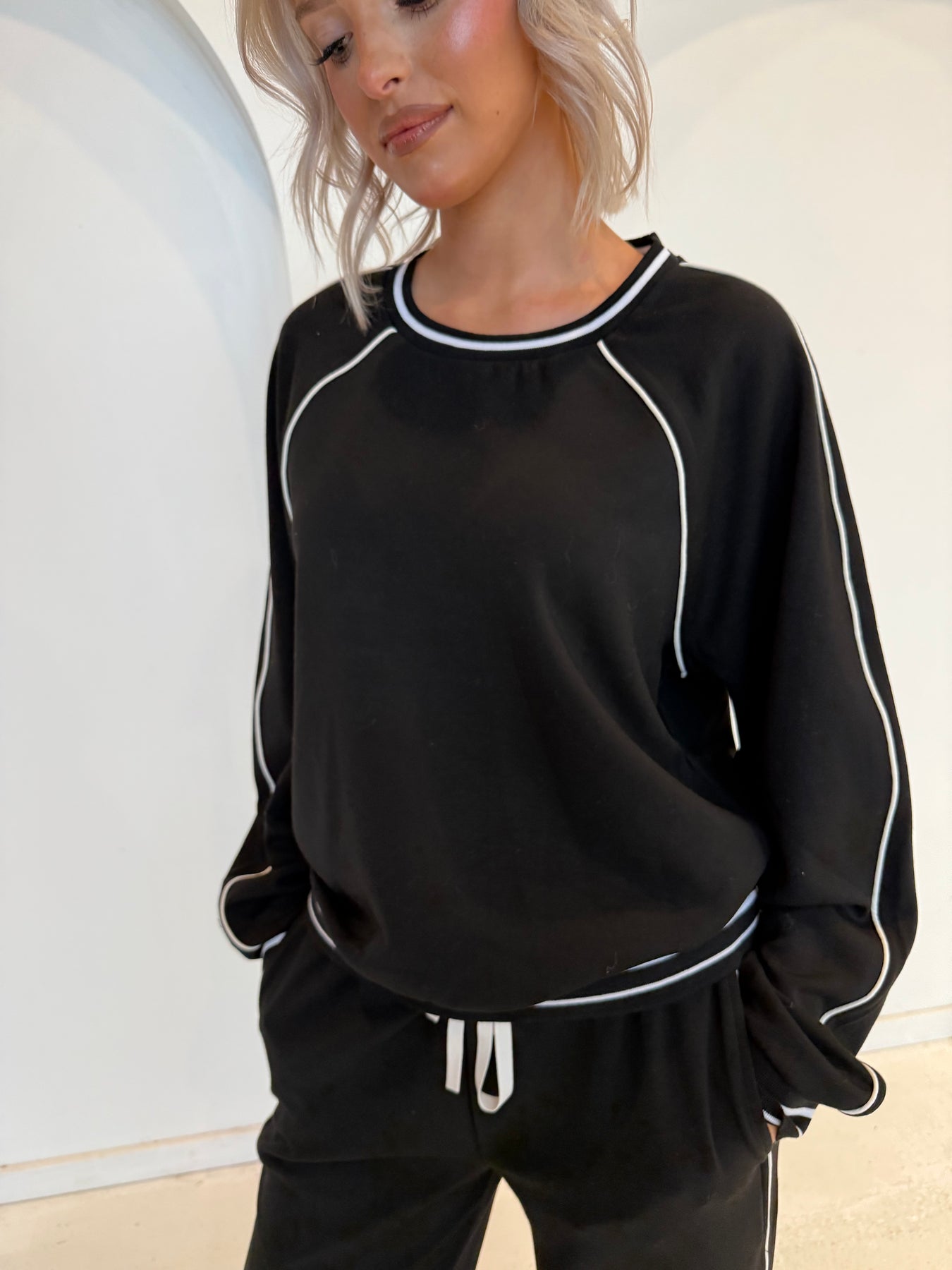 Meet your new favorite lounge-to-lifestyle essential — the Air Luxe Top. Designed with a silky-soft, airy knit that drapes beautifully, this pullover combines the comfort of loungewear with a refined, elevated edge. Contrast piping adds a sporty-chic detail, while the relaxed fit makes it perfect for pairing with the matching Air Luxe Pant or styling solo with denim for an effortlessly polished look.