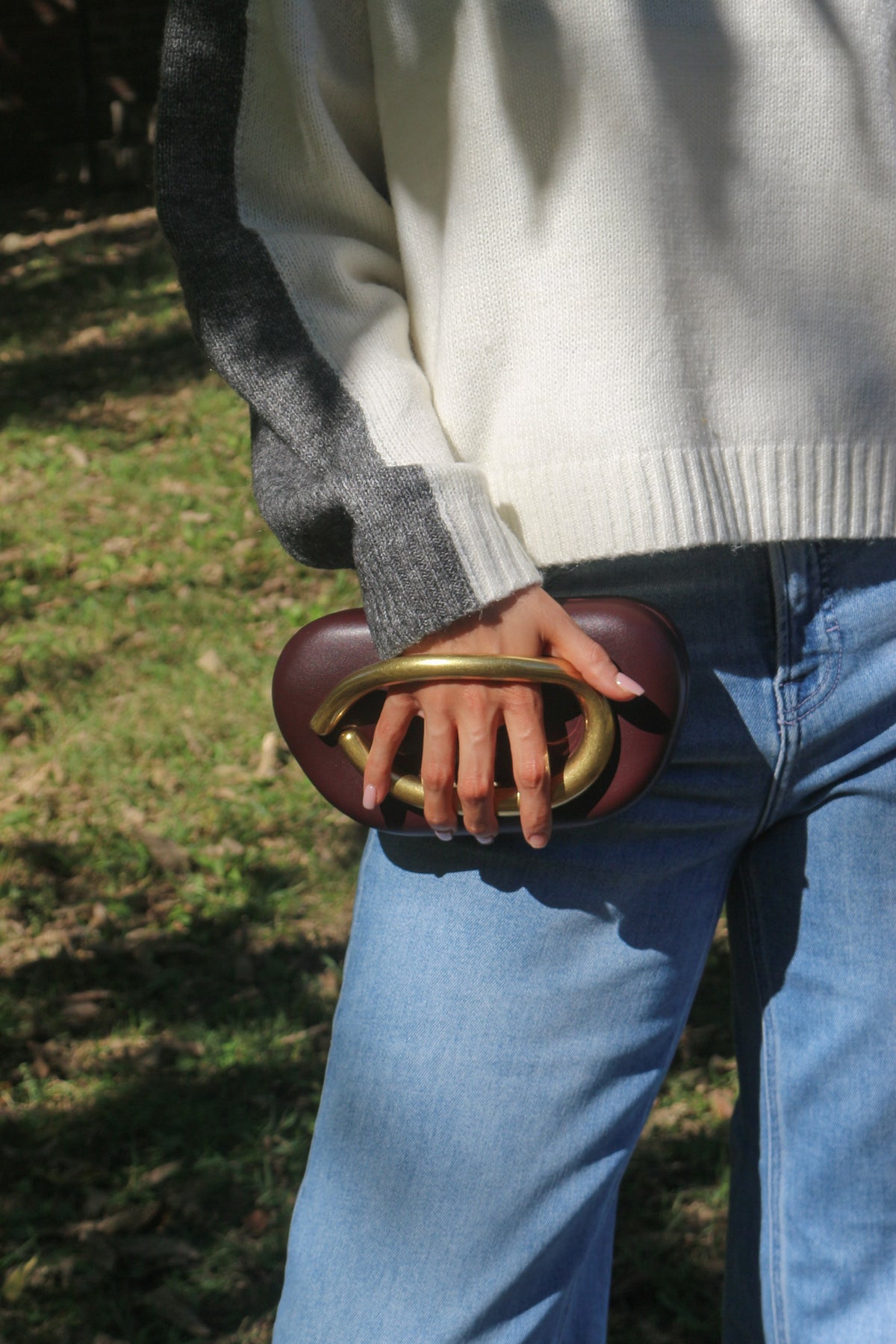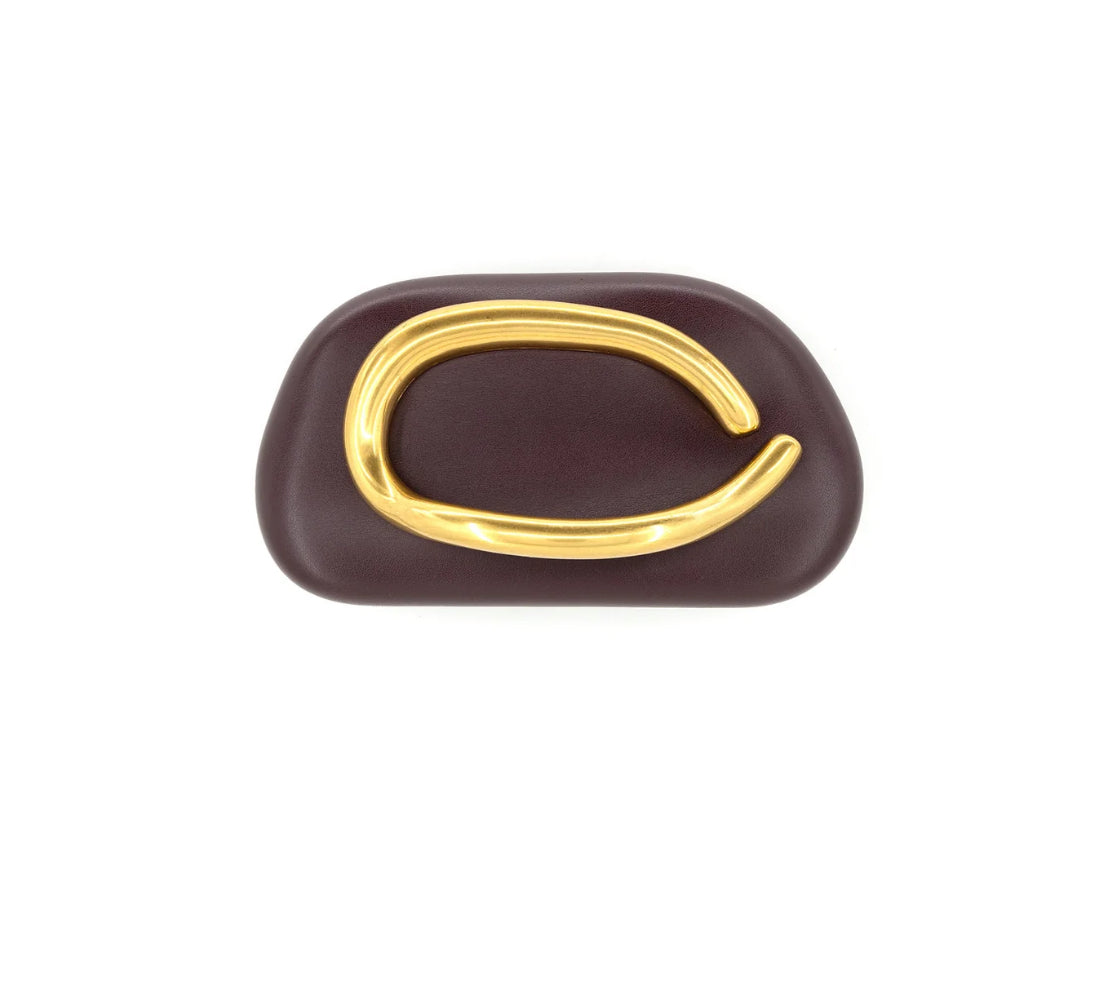 Sleek, sculptural, and striking — the Celine Clutch is a true statement piece. Crafted in smooth leather with a bold gold-tone curved clasp, it balances modern artistry with timeless sophistication. The compact silhouette makes it perfect for evening occasions or minimal daytime styling when you want your accessories to do the talking.