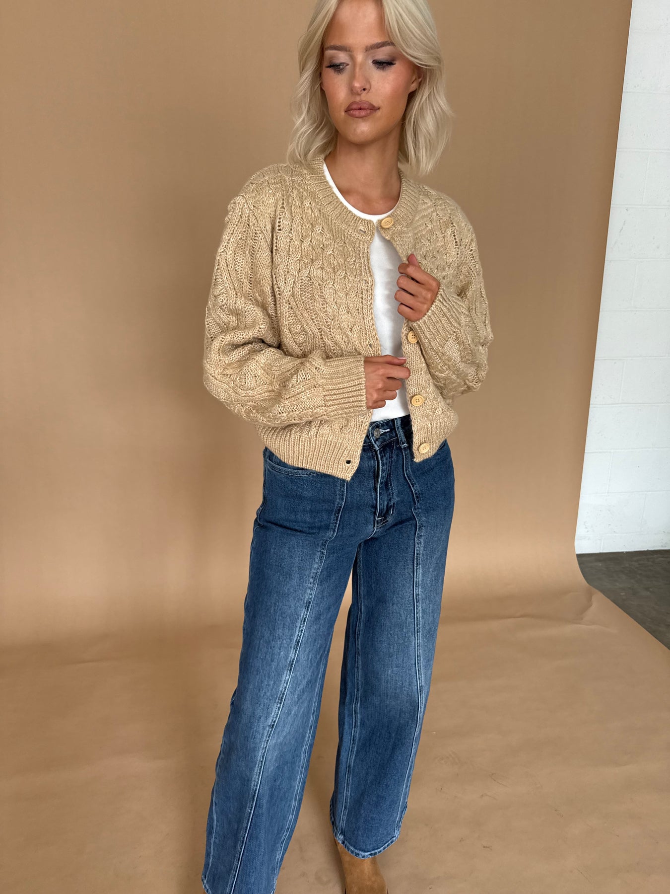 A classic with a cozy twist — The Mara Cable Knit Cardigan is the perfect layer for crisp days and easy weekends. Featuring a textured cable knit design, relaxed fit, and button-front closure, this timeless piece adds instant charm to any look. Wear it open over a tee or buttoned up with denim for an effortlessly put-together fall vibe.
