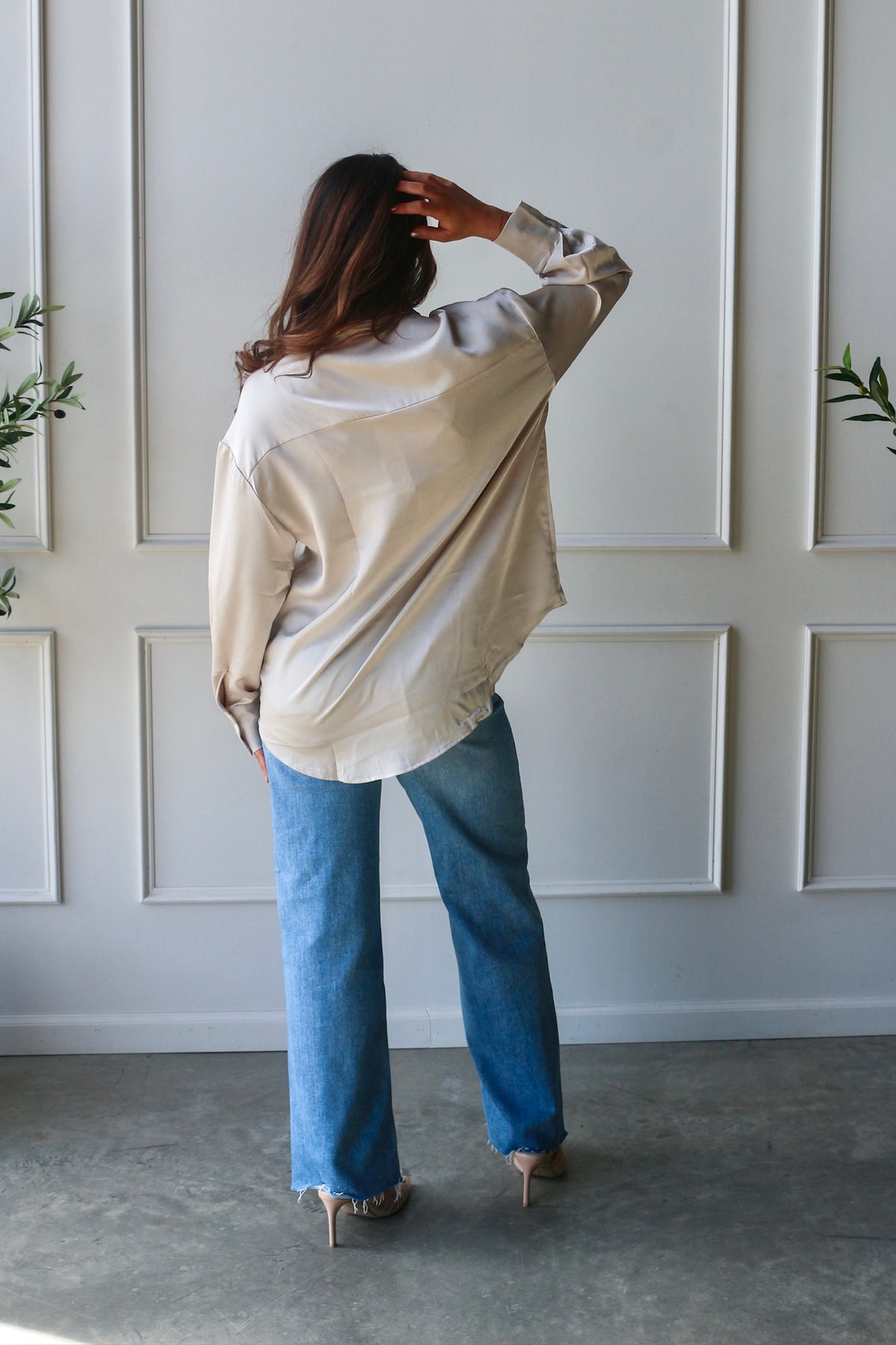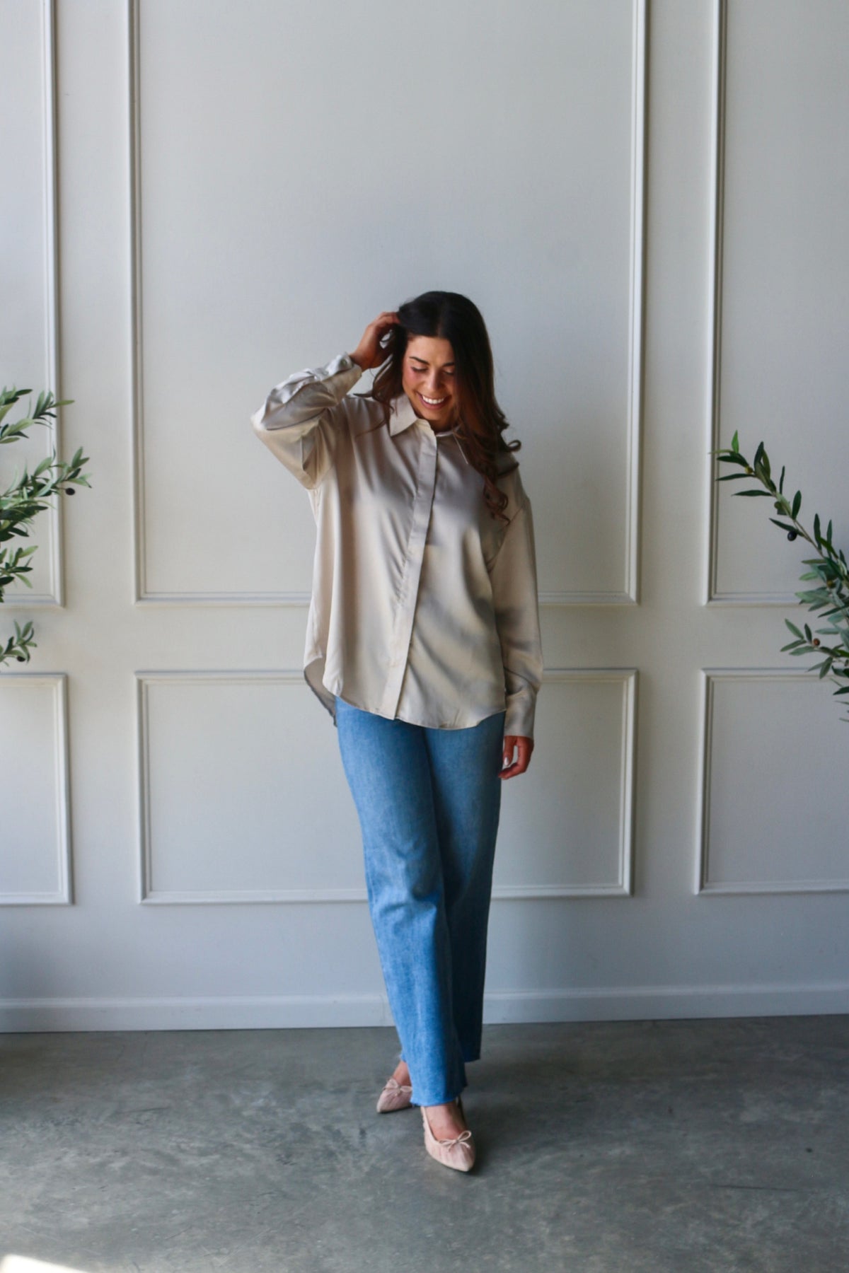 Timeless, polished, and effortlessly chic — the Sloane Satin Button Down brings a touch of luxe to your everyday wardrobe. Designed with a fluid satin finish that drapes beautifully, this blouse elevates even your simplest looks. Featuring a relaxed fit, hidden button placket, and classic collared neckline, it’s perfect for dressing up denim or layering under a blazer for work.