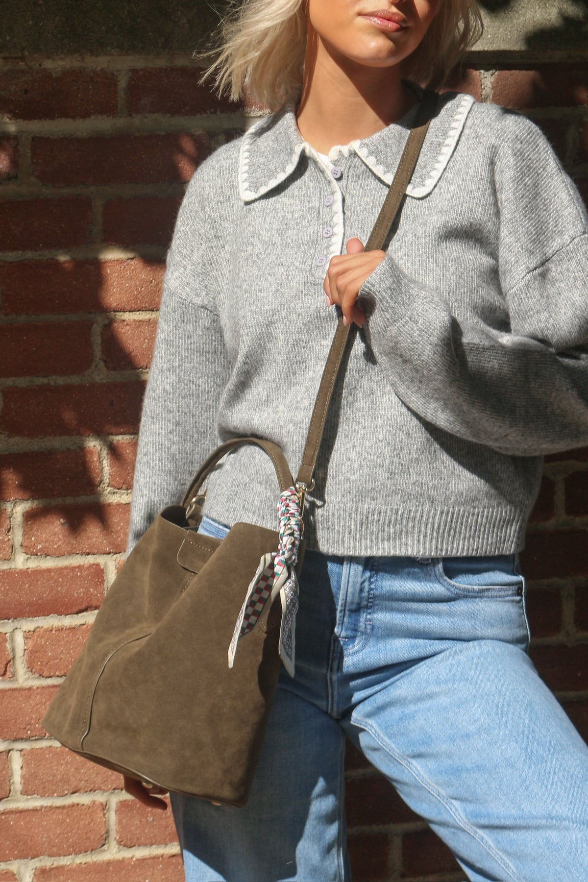 Meet your new everyday go-to — the Emery Suede Bucket Bag. Designed in soft, buttery suede with a relaxed silhouette that molds perfectly to your day. The single top handle is wrapped with a printed scarf detail for a touch of effortless polish, while the magnetic snap closure keeps your essentials secure. Spacious enough for daily errands yet chic enough for dinner out, this is the one you’ll reach for again and again.