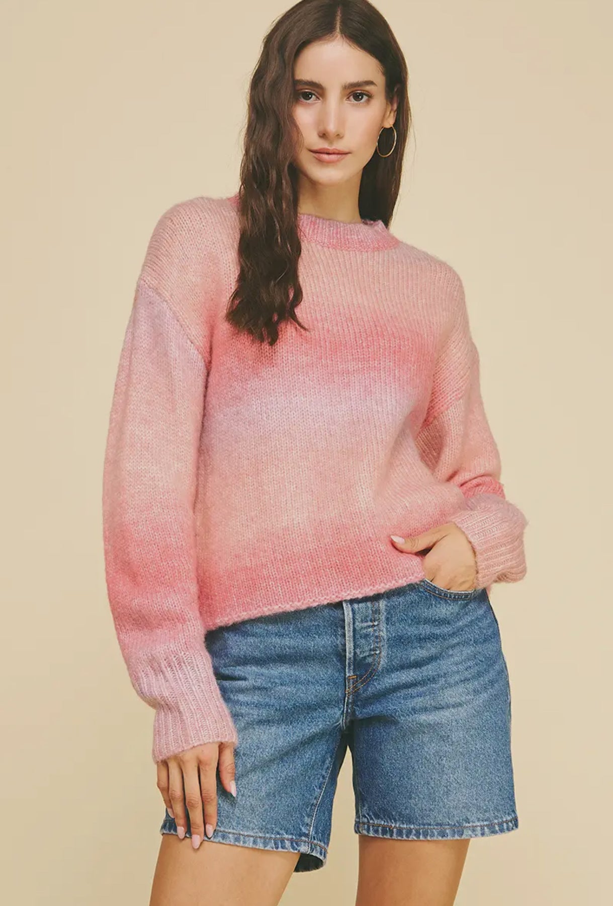 Sweet, soft, and effortlessly wearable. This pink ombré knit sweater features a beautiful gradient blend of blush and pastel pink tones for a fresh, feminine look. Designed with a relaxed fit and lightweight knit, it’s the perfect piece for transitional seasons and easy everyday styling.